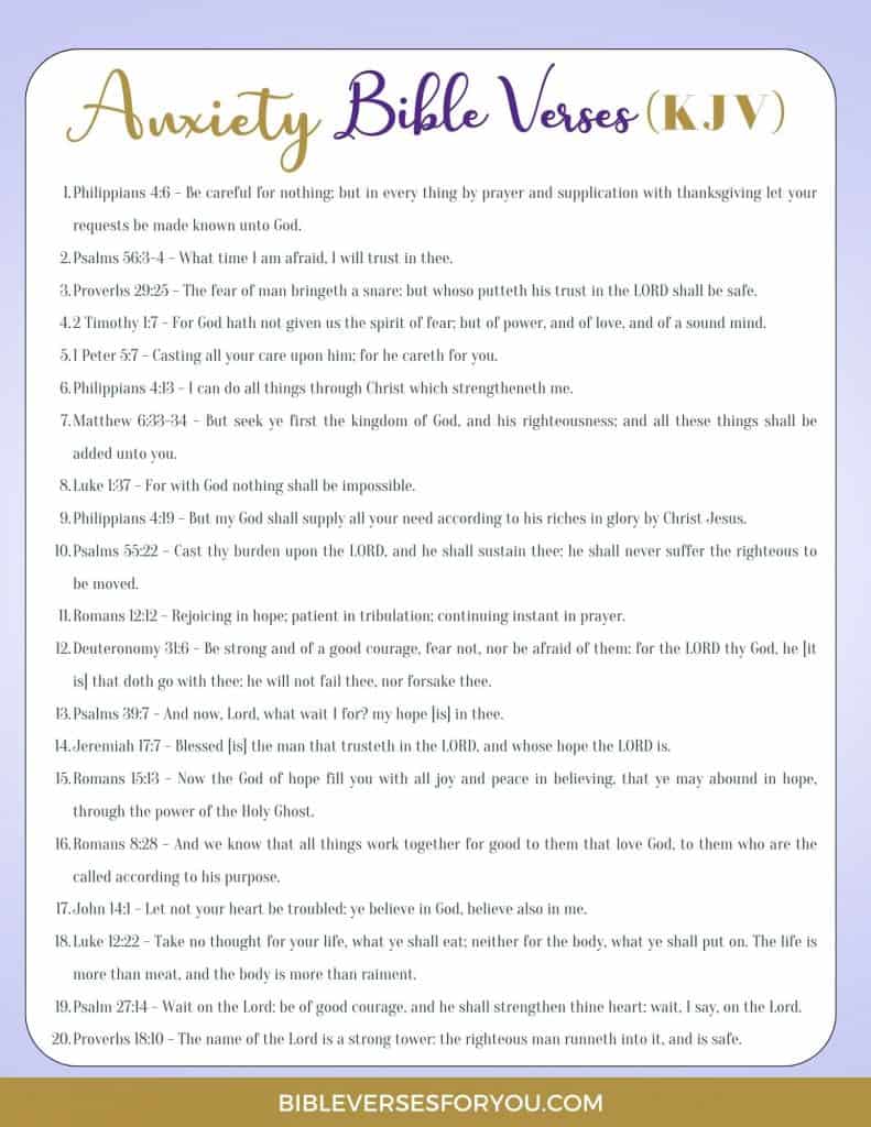 Need some encouraging Bible Verses about Anxiety and Fear? Download our FREE Anxiety Bible Verses in KJV Version!