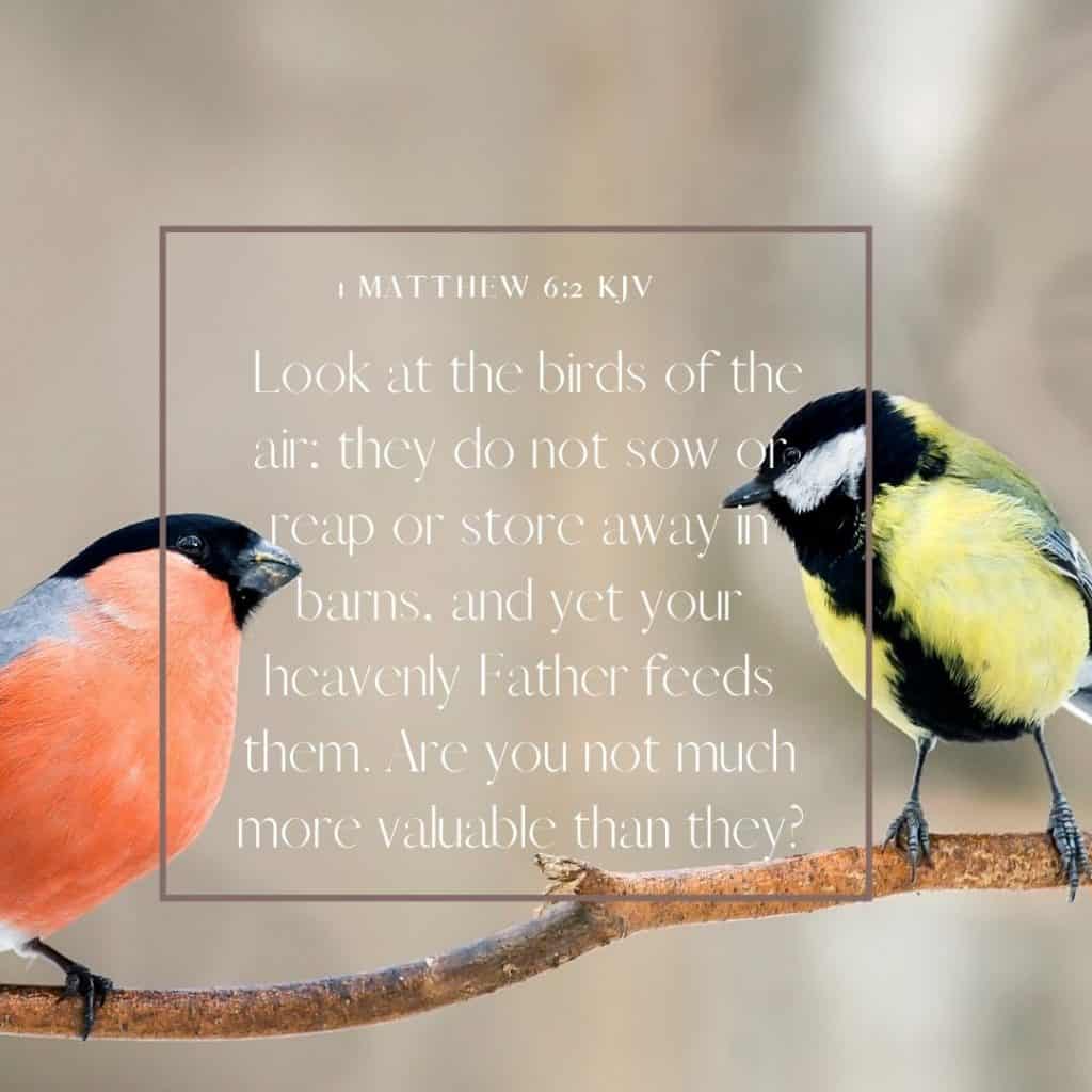 Matthew 6:2 – Look at the birds of the air; they do not sow or reap or store away in barns, and yet your heavenly Father feeds them. Are you not much more valuable than they?