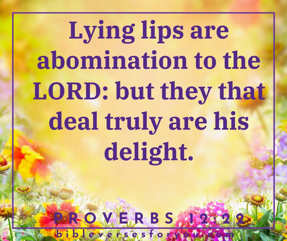- Proverbs 12:22 – Lying lips are abomination to the LORD: but they that deal truly are his delight.