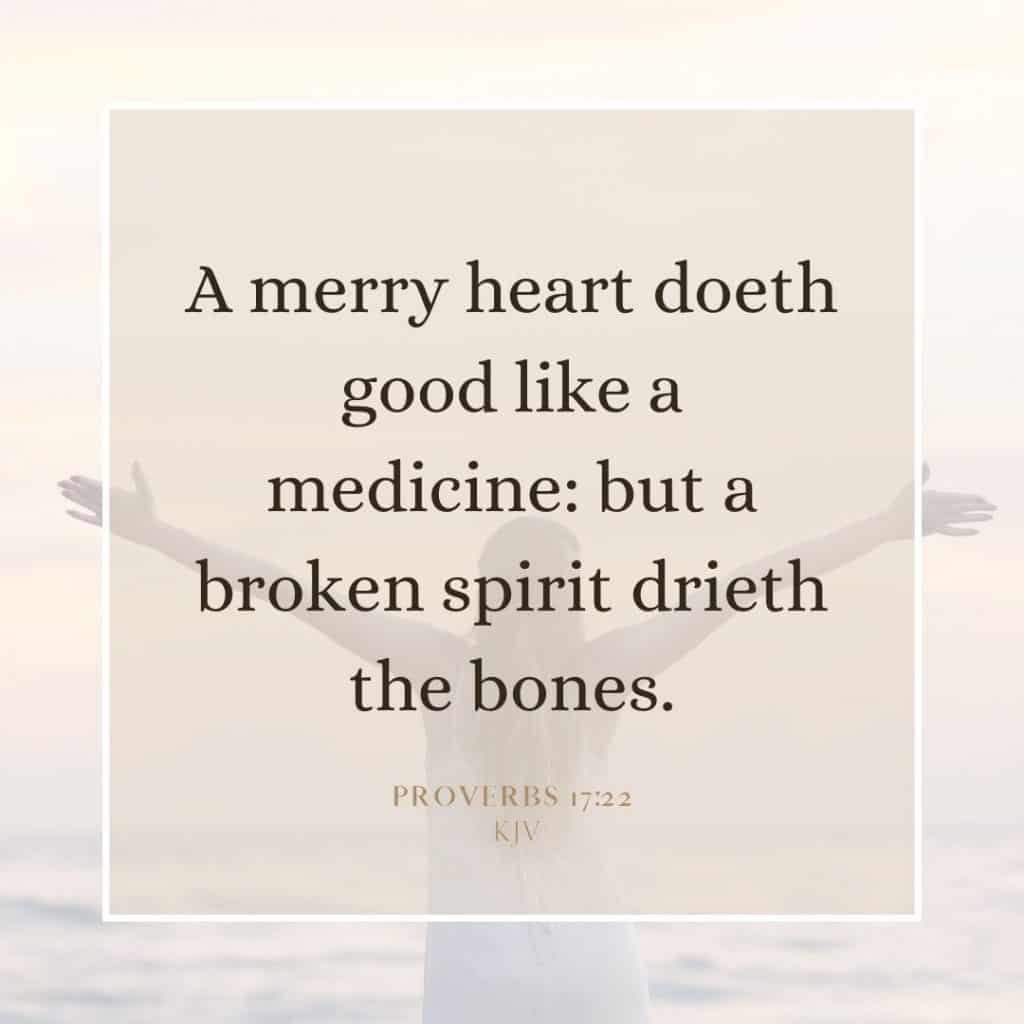 - Proverbs 17:22 – A merry heart doeth good like a medicine: but a broken spirit drieth the bones.