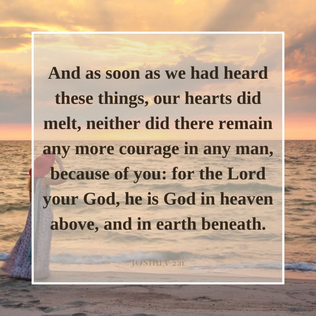 What is your takeaway from Rahab’s message today? Every day is a new day, and it’s your time to shine the light of Jesus Christ. What is He asking you to do today? Rahab believed the message that the 2 spies delivered. Do you believe His Word? It’s time for you to trust that God has come to rescue you from doubts, fears, worries, whatever sins they may be. Are you ready to fulfill your destiny? Trust in Him, and He will provide your path to righteousness.