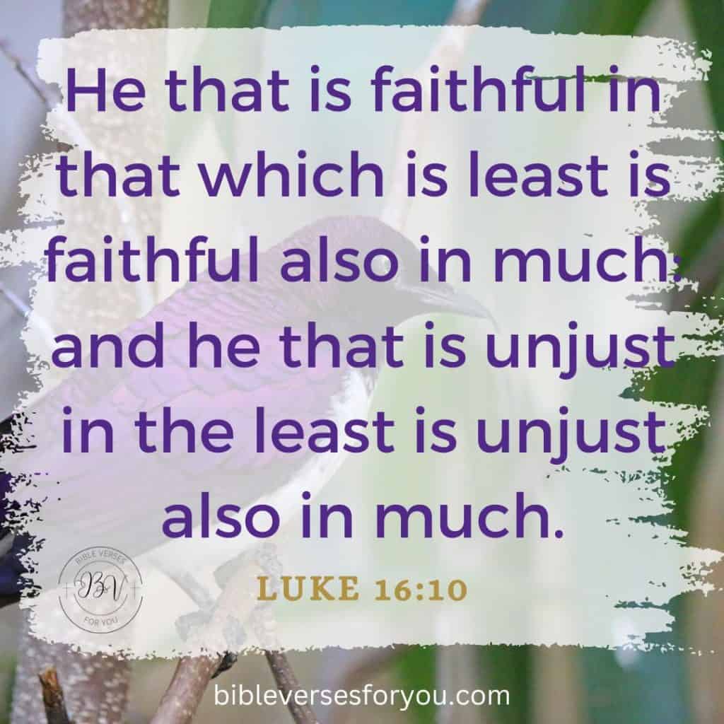 9. He that is faithful in that which is least is faithful also in much: and he that is unjust in the least is unjust also in much. – Luke 16:10