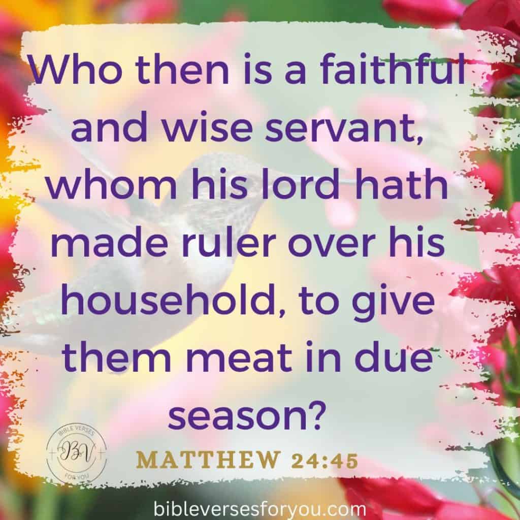 3. Who then is a faithful and wise servant, whom his lord hath made ruler over his household, to give them meat in due season? Matthew 24:45