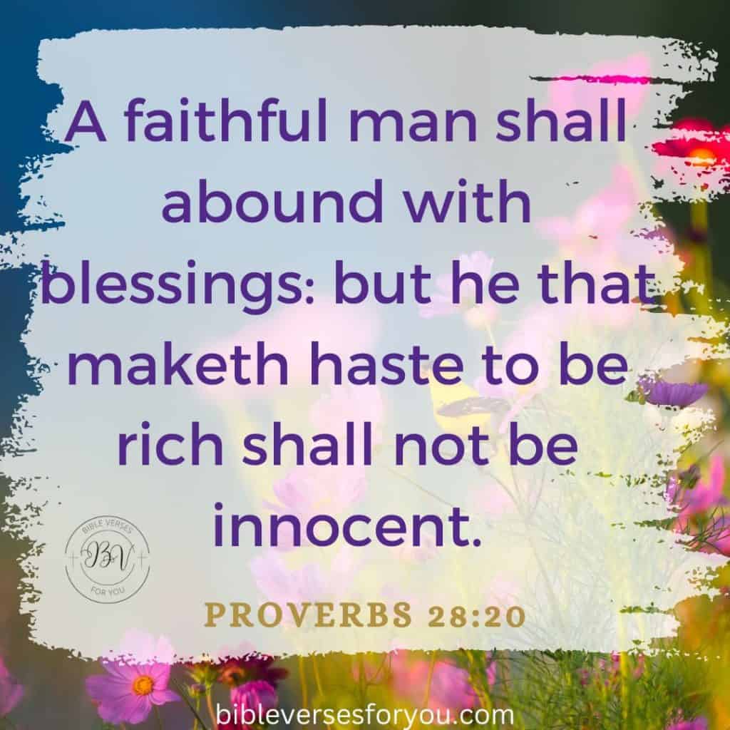 4. A faithful man shall abound with blessings: but he that maketh haste to be rich shall not be innocent. – Proverbs 28:20