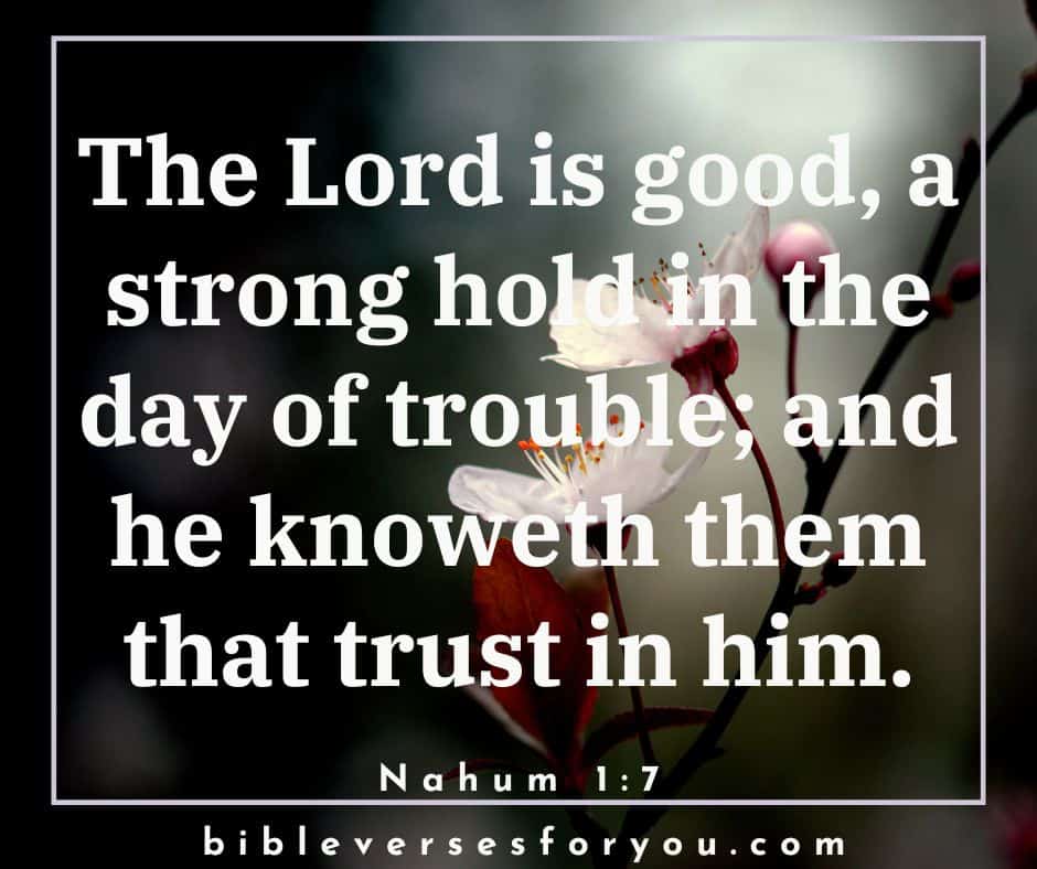 Nahum 1:7 The Lord is good, a strong hold in the day of trouble; and he knoweth them that trust in him.