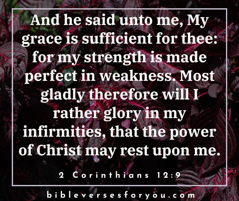 2 Corinthians 12:9 And he said unto me, My grace is sufficient for thee: for my strength is made perfect in weakness. Most gladly therefore will I rather glory in my infirmities, that the power of Christ may rest upon me.