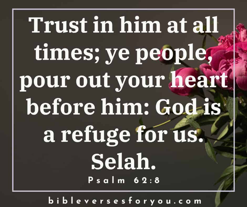 Psalm 62:8 Trust in him at all times; ye people, pour out your heart before him: God is a refuge for us. Selah.