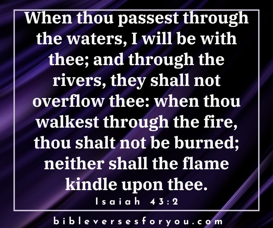 Isaiah 43:2 When thou passest through the waters, I will be with thee; and through the rivers, they shall not overflow thee: when thou walkest through the fire, thou shalt not be burned; neither shall the flame kindle upon thee.