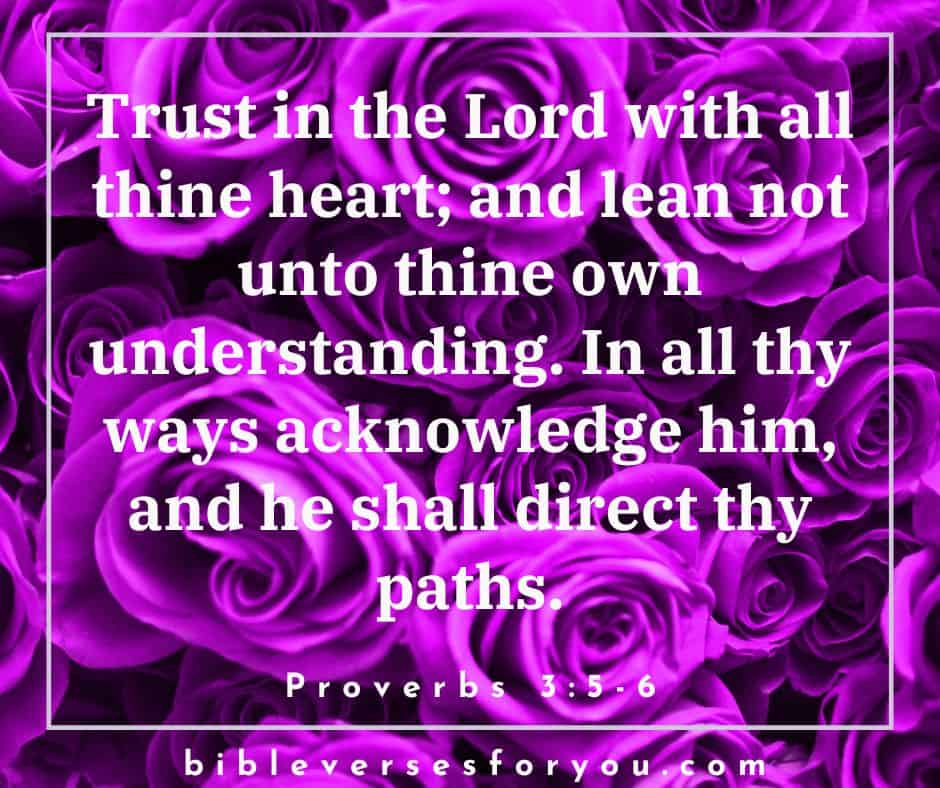 Proverbs 3:5-6 Trust in the Lord with all thine heart; and lean not unto thine own understanding. In all thy ways acknowledge him, and he shall direct thy paths.