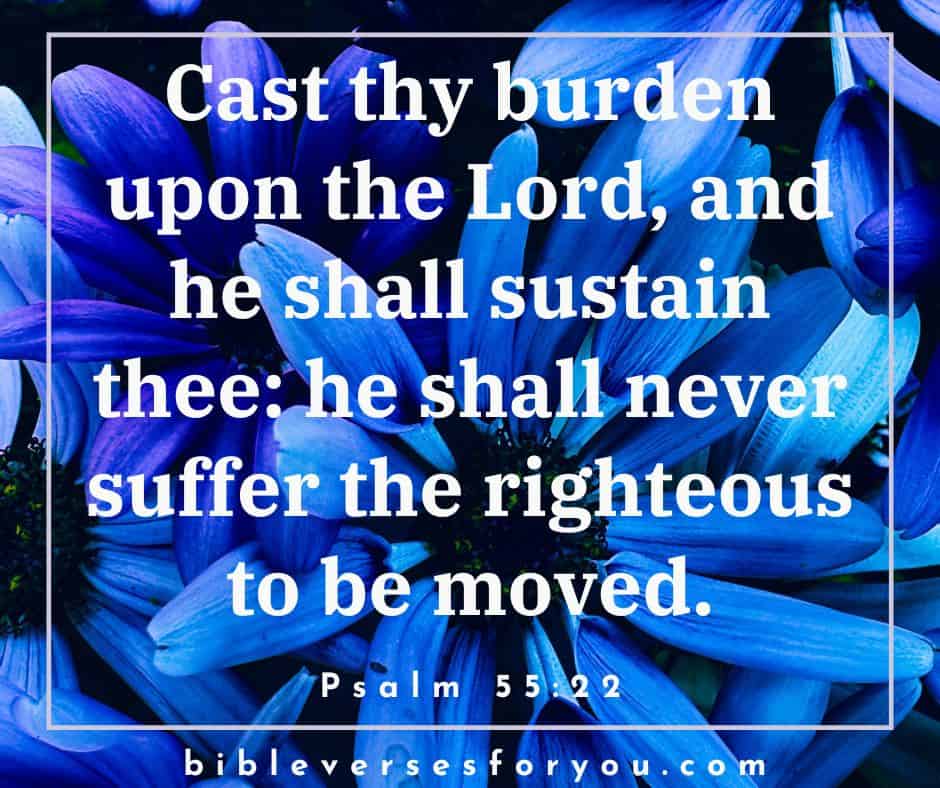 Psalm 55:22 Cast thy burden upon the Lord, and he shall sustain thee: he shall never suffer the righteous to be moved.