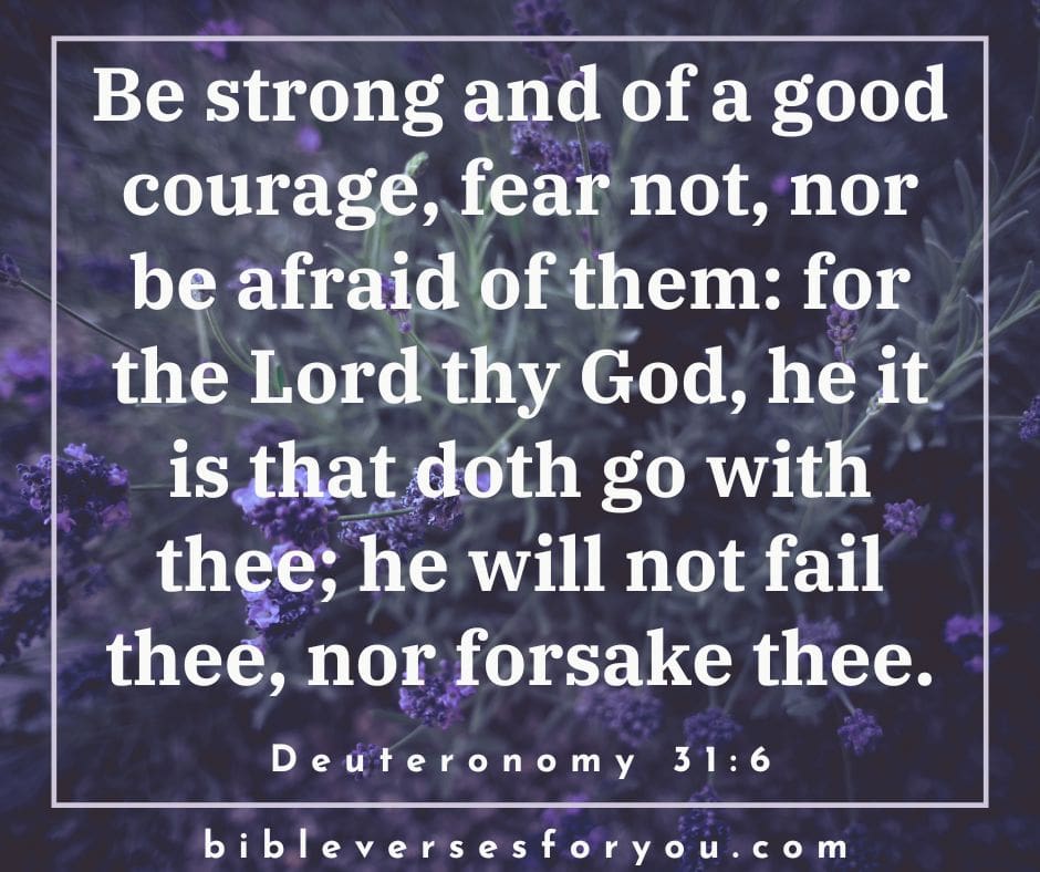 Deuteronomy 31:6 Be strong and of a good courage, fear not, nor be afraid of them: for the Lord thy God, he it is that doth go with thee; he will not fail thee, nor forsake thee.