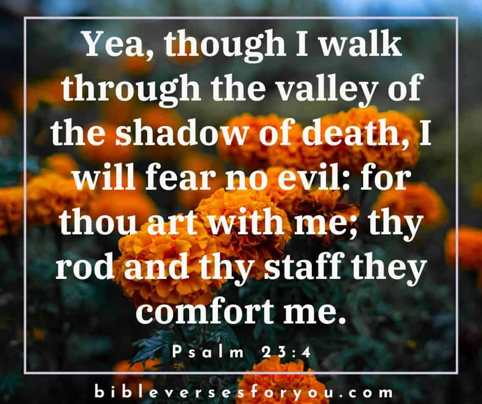 Psalm 23:4 Yea, though I walk through the valley of the shadow of death, I will fear no evil: for thou art with me; thy rod and thy staff they comfort me.