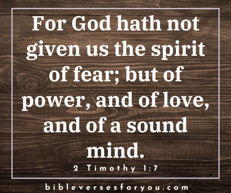 2 Timothy 1:7 For God hath not given us the spirit of fear; but of power, and of love, and of a sound mind.