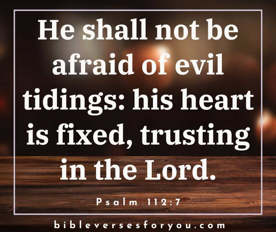 Psalm 112:7 He shall not be afraid of evil tidings: his heart is fixed, trusting in the Lord.