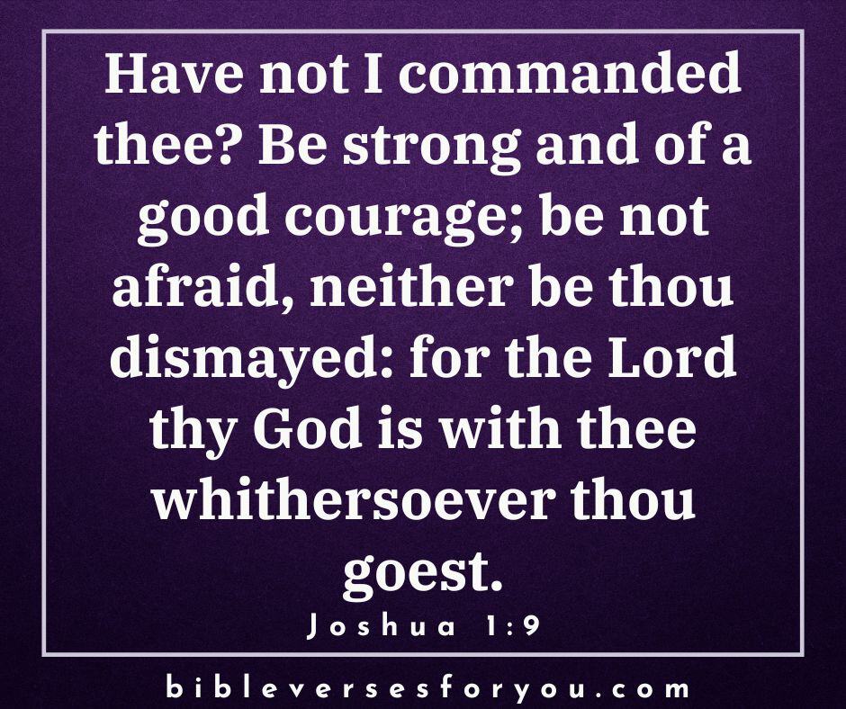 Joshua 1:9 Have not I commanded thee? Be strong and of a good courage; be not afraid, neither be thou dismayed: for the Lord thy God is with thee whithersoever thou goest.
