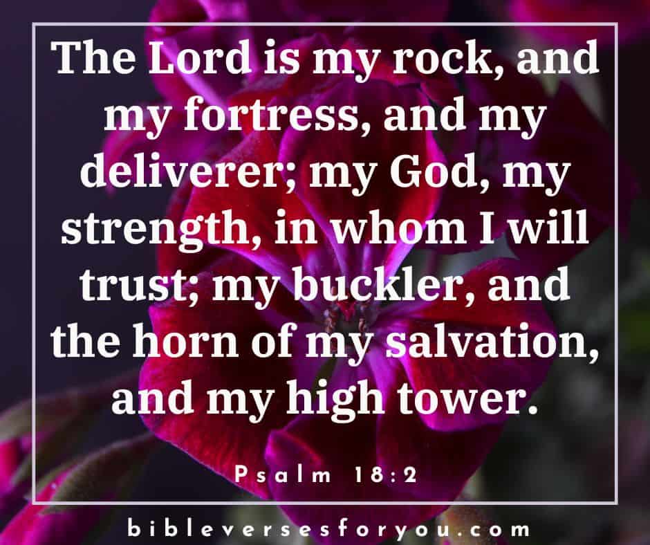 Psalm 18:2 The Lord is my rock, and my fortress, and my deliverer; my God, my strength, in whom I will trust; my buckler, and the horn of my salvation, and my high tower.