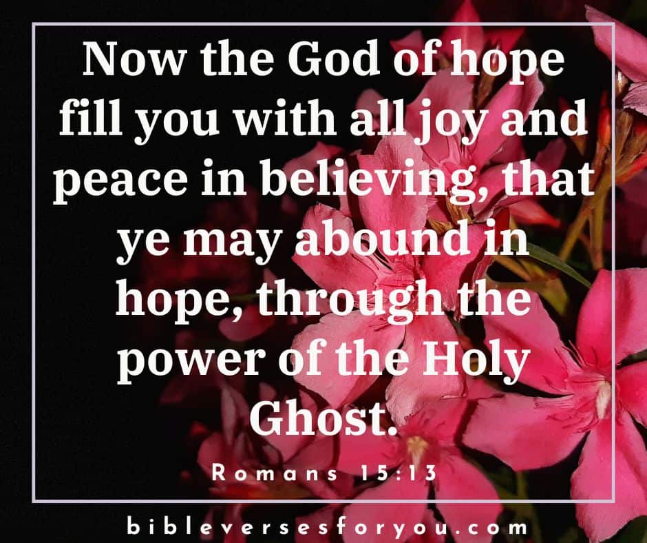 Romans 15:13 Now the God of hope fill you with all joy and peace in believing, that ye may abound in hope, through the power of the Holy Ghost.