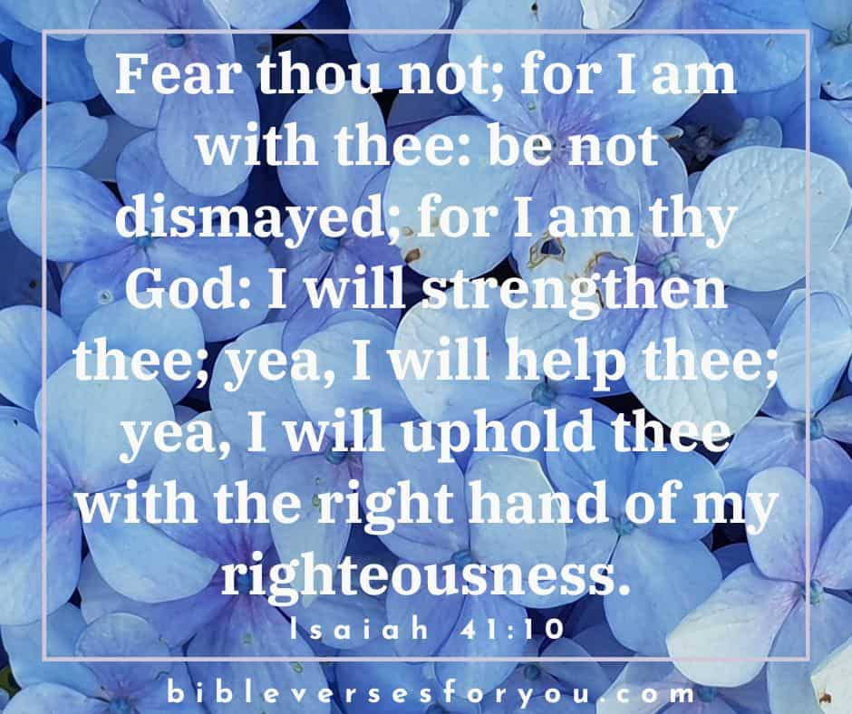 Isaiah 41:10 Fear thou not; for I am with thee: be not dismayed; for I am thy God: I will strengthen thee; yea, I will help thee; yea, I will uphold thee with the right hand of my righteousness.