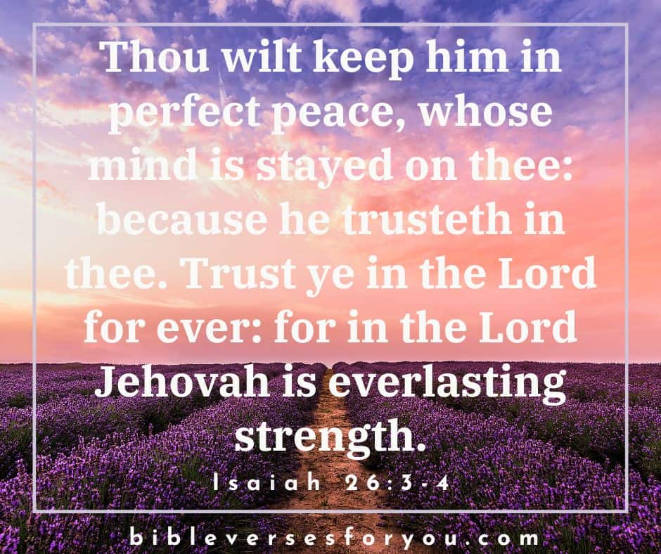 Isaiah 26:3-4 Thou wilt keep him in perfect peace, whose mind is stayed on thee: because he trusteth in thee. Trust ye in the Lord for ever: for in the Lord Jehovah is everlasting strength.