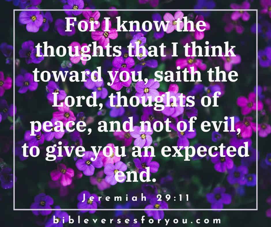 Jeremiah 29:11 For I know the thoughts that I think toward you, saith the Lord, thoughts of peace, and not of evil, to give you an expected end.