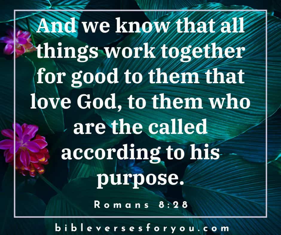 Romans 8:28 And we know that all things work together for good to them that love God, to them who are the called according to his purpose.