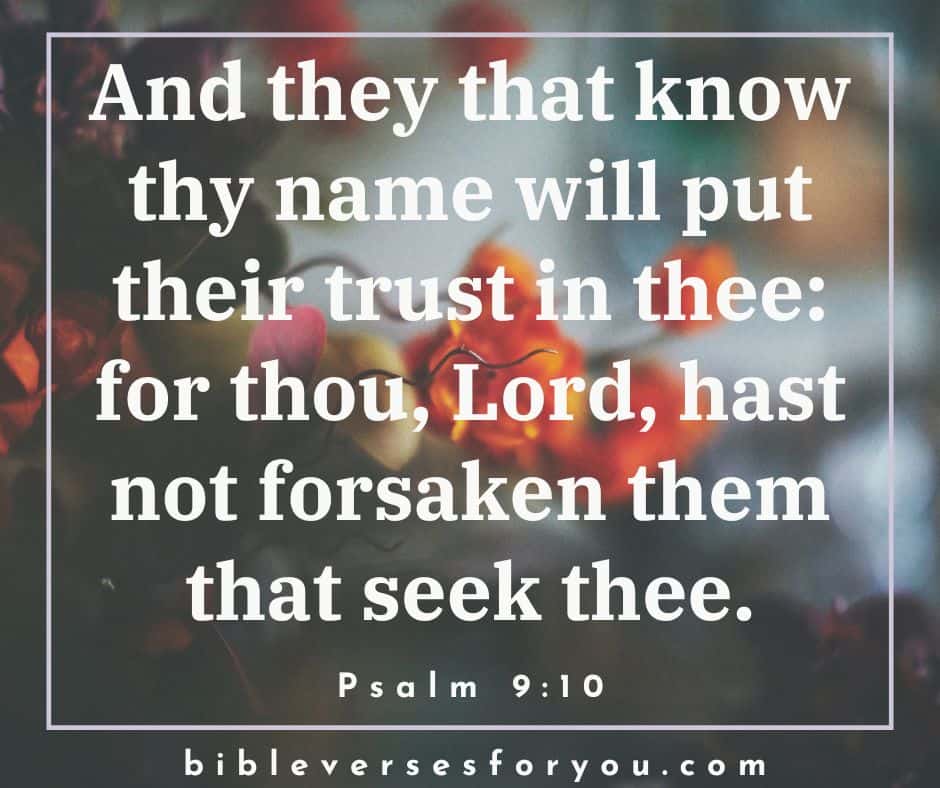 Psalm 9:10 And they that know thy name will put their trust in thee: for thou, Lord, hast not forsaken them that seek thee.