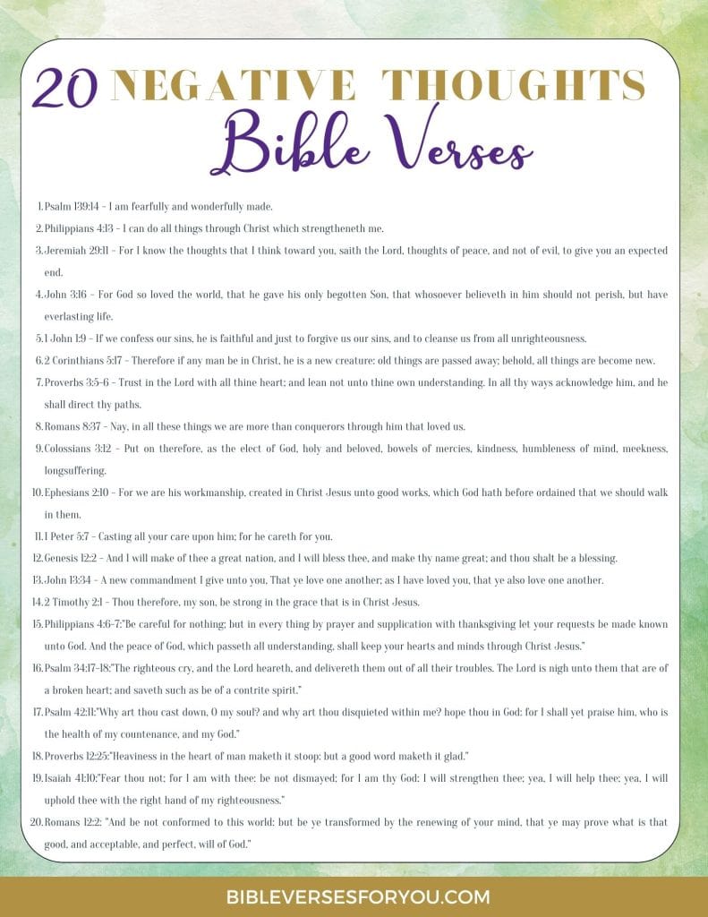 Now, Here is a list of 20 key Bible Verses that are powerful tools to help get you started on a positive thinking mindset using a Biblical perspective: