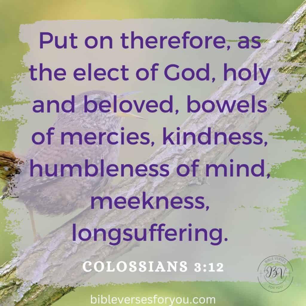 3. Put on therefore, as the elect of God, holy and beloved, bowels of mercies, kindness, humbleness of mind, meekness, longsuffering. Colossians 3:12