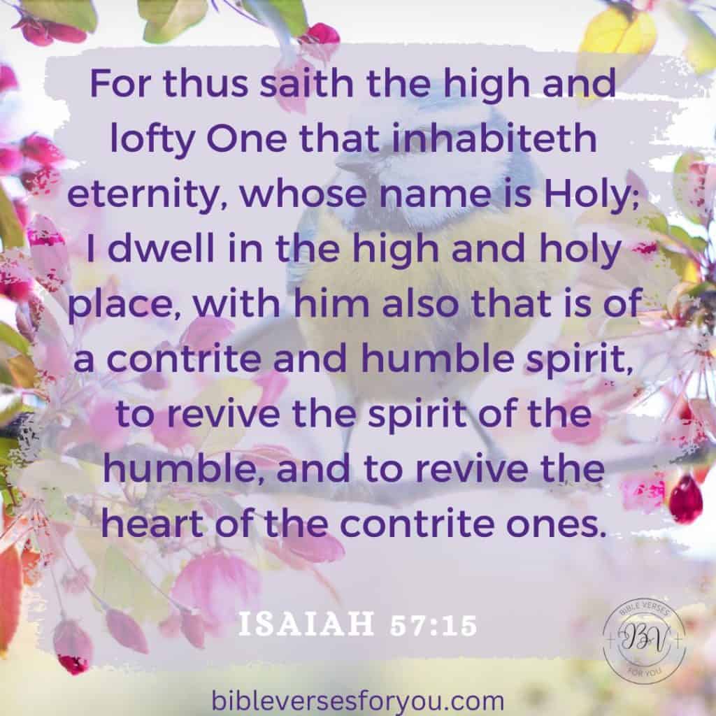 9. For thus saith the high and lofty One that inhabiteth eternity, whose name is Holy; I dwell in the high and holy place, with him also that is of a contrite and humble spirit, to revive the spirit of the humble, and to revive the heart of the contrite ones. Isaiah 57:15