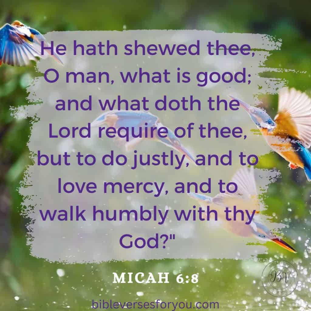 10. He hath shewed thee, O man, what is good; and what doth the Lord require of thee, but to do justly, and to love mercy, and to walk humbly with thy God? Micah 6:8