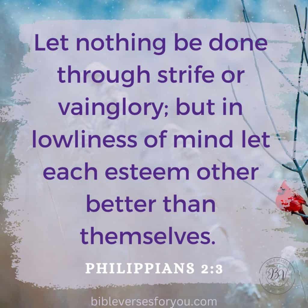 2. Let nothing be done through strife or vainglory; but in lowliness of mind let each esteem other better than themselves. Philippians 2:3